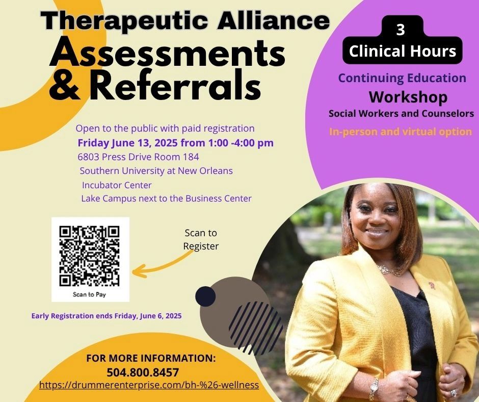Location: Southern University New Orleans, 6803 Press Dr., Cost: $45.00; Presenter: Dr. Jerrelda Sanders; Approved for 3.0 CE clock Hours, New Orleans (in pers